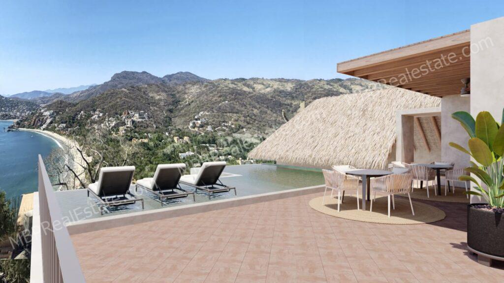 An attractive and secure development with direct views to La Ropa Beach and, in the distance, Zihuatanejo town with a backdrop of the coastal mountains
